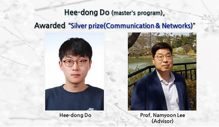 Master candidate Hee-dong Do (Advisor: Prof. Namyoon Lee) has been awarded The Silver prize (7,000,000 won in prize money)in Communication & Networks at the 25th Humantech PAPER AWARD.