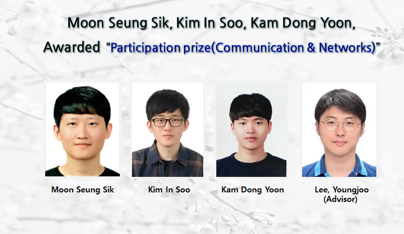 Master candidate Moon Seung Sik, Kim In Soo, Kam Dong Yoon (Advisor: Prof. Lee, Youngjoo) has been awarded The participation prize (2,000,000 won in prize money)in Communication & Networks at the 25th Humantech PAPER AWARD.